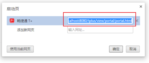 3、在设置网页的弹出框中输入T+的登录网址保存即可