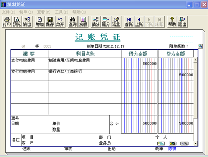 2、再点开总账系统,点击“填制凭证”,对应的凭证如下: