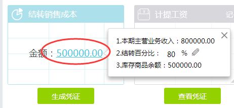 (1) 易代账默认按“收入百分比法”结转,单击结转销售成本金额后的编辑按钮,可以手工调整结转比例。