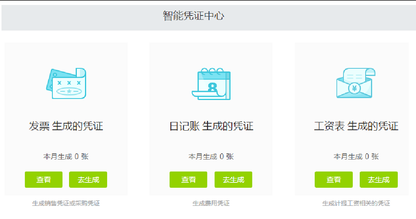 可以通过发票、日记账、工资表的数据,智能生成凭证。