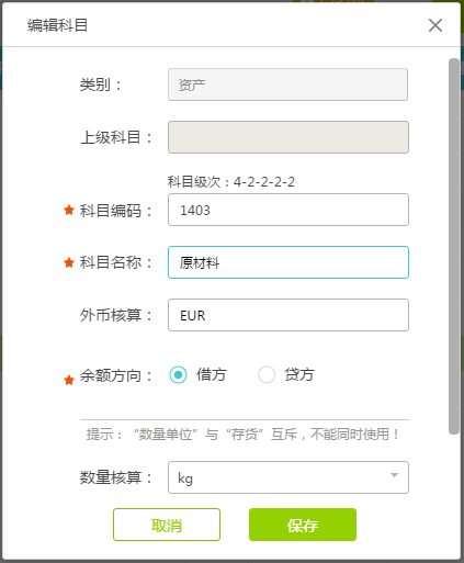 设置好科目的数量核算、外币核算后,在科目期初界面右上方,会出现“数量外币”按钮,点击可打开数量核算、外币核算的科目期初金额录入界面。