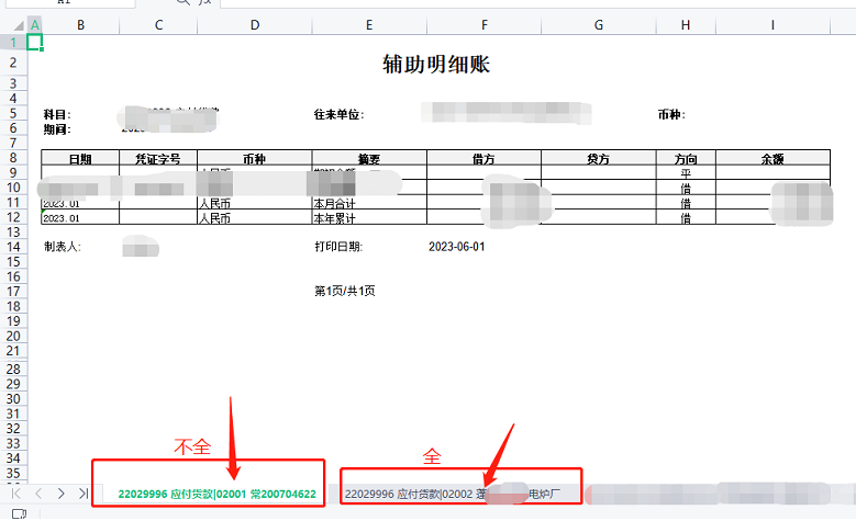 【问题现象】辅助明细账导出后的EXCEL的标题名称有的不全会变成数字。