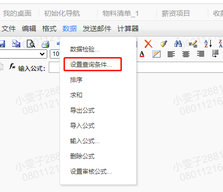 2、打开资产负债表,点击数据下面的设置查询条件;