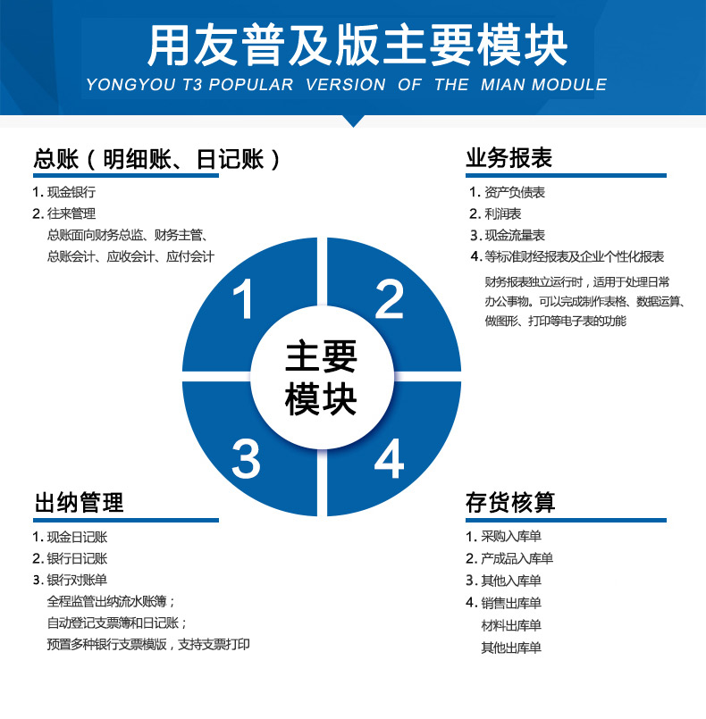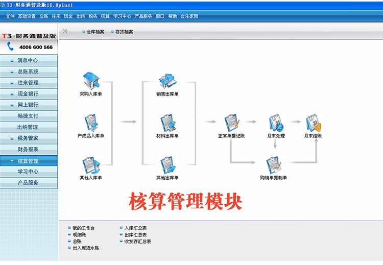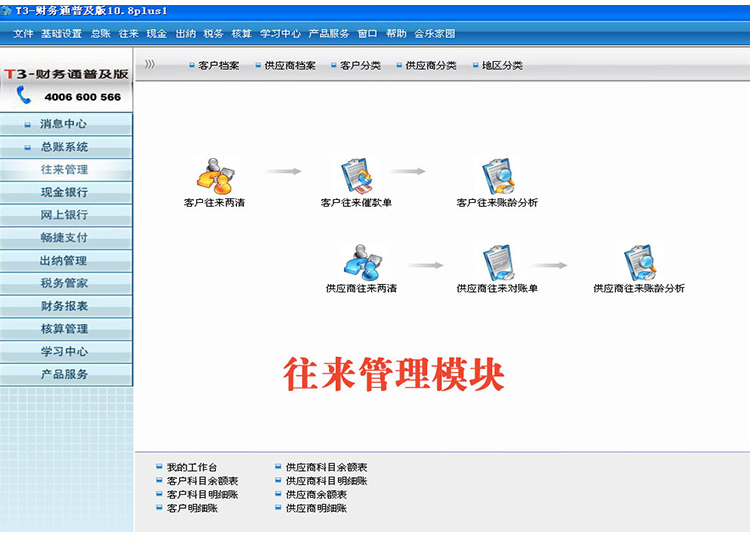 《用友T3普及版》系统以凭证处理为主线,提供凭证处理,预提摊销处理,自动转账,调汇,结转损益等会计核算功能,以及科目预算,往来核算,现金流量表等财务管理功能,并通过独特的核算项目功能,实现企业各项业务的精细化核算。