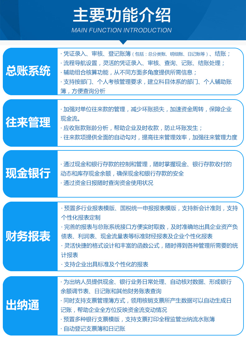 流程导航设置,灵活的凭证录入、审核、查询、记账、结账处理;