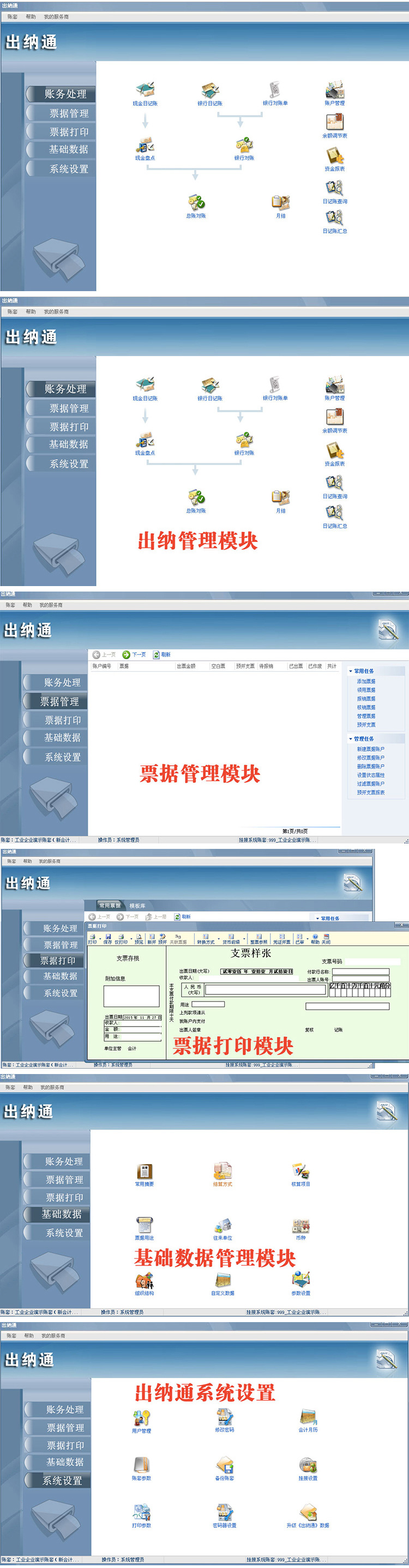 为出纳人员提供现金、银行业务日常处理、自动核对数据、形成银行余额调节表、日记账和其他其它财务报表查询,同时支持支票管理簿方式,领用核销支票所产生数据可以自动生成日记账,帮助企业全方位反映资金流变动情况。