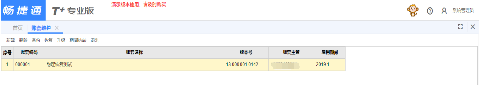 登陆到系统管理中,在“帐套维护”里,点击“恢复”,恢复帐套时有“新建帐套”和“覆盖帐套”两种方式,选择好方式之后,选择之前备份好的本地文件进行恢复即可。