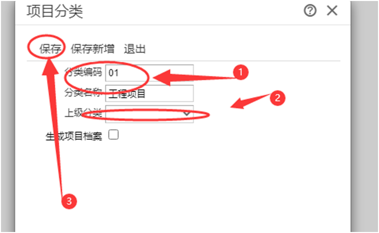 分类加完之后点上面的新增----输入项目编号----输入项目名称-------选择是哪个分类下面的----然后点保存,结束!这里的项目编码没有任何规则和要求,尽量不要带特殊符号:*&……%¥@等等。