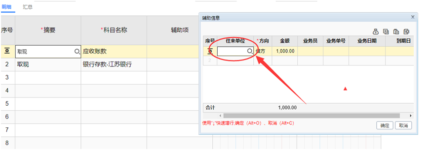 选到辅助核算科目的时候,会弹出一个框子,让你选,如下图选往来单位。