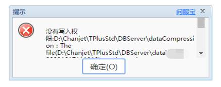 问:畅捷通T+专业版进行数据备份时出现如图下提示:“没有写入权限...”