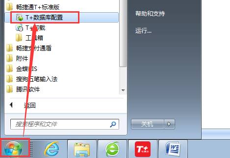 答:1、首先来进行数据库配置,点击电脑左下角开始-程序-畅捷通T+专业版-T+数据库配置,如图下: