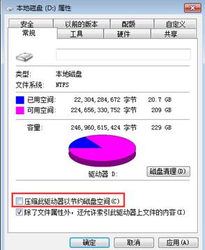 3、如果还是备份不成功,那就继续设置,找到畅捷通T+专业版程序所在硬盘,以程序在D盘为例,鼠标右键属性,取消“压缩此驱动器以节约磁盘空间”前面的勾,如图下操作: