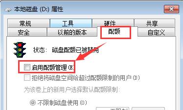 同时配额页签中,不要勾“启用配额管理”,设置完以后点击确定