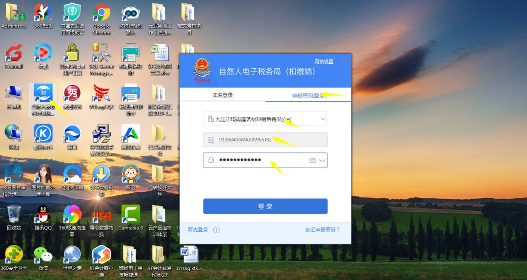 STEP3:申报时,打开:自然人税收管理系统扣缴客户端,可选择申报密码登录:输入企业名称、纳税人识别号、登录密码进行登录。