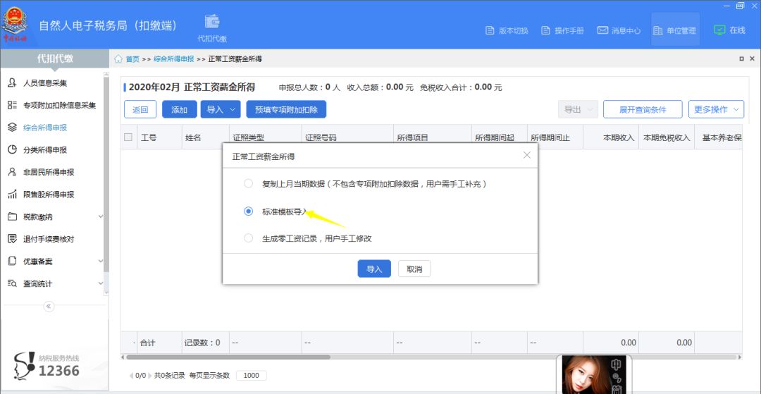 在“综合所得申报”下,选择“正常工资薪金所得”报表进行填写,可复制上月当期数据/模板导入/生成零工资,操作非常便捷。