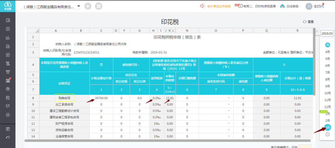 Step2:因此该企业2019年3月的印花税申报表自动生成如下: