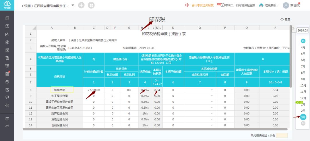 由此自动生成的2019年3月的印花税申报表自动生成如下: