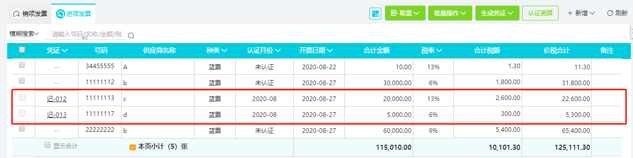 2、将截止到期末的进项发票全部导入账套,并将已经入账的进项发票先做模拟认证。