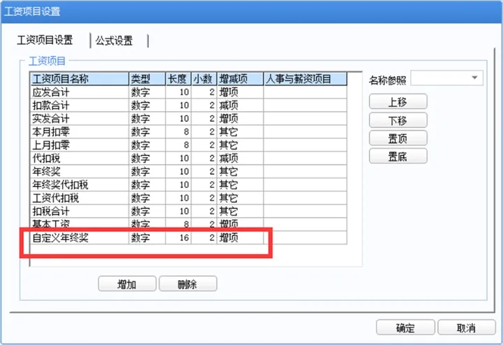 注意:1)该工资项目不得与系统预置的"年终奖"重名;2)该工资项目的增减项为增项;3)系统预置的"年终奖"项目中不录入任何数据。