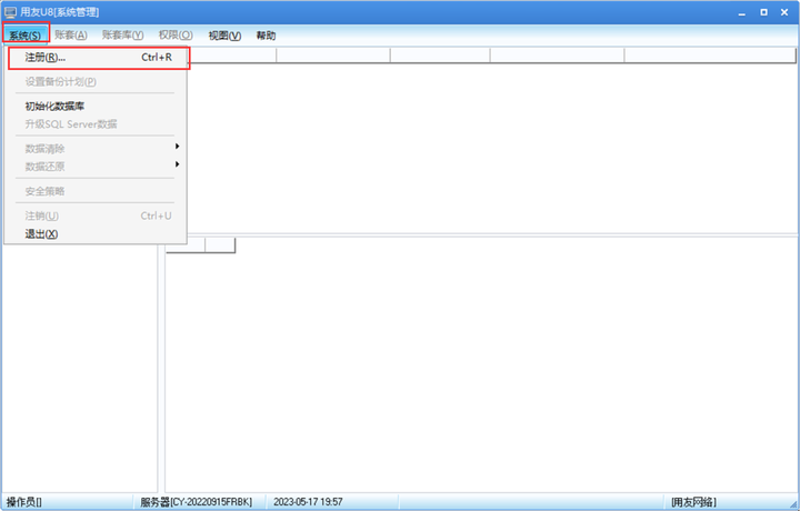 1、服务器上登录【系统管理】,点击【系统】--【注册】。