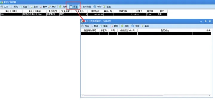 4、备份日志查看:自动备份计划列表上,点击【日志】查看结果