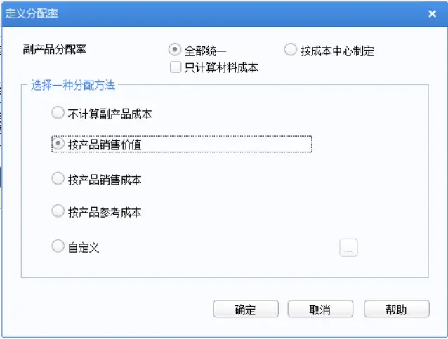 在产品分配率设为:只计算材料成本.