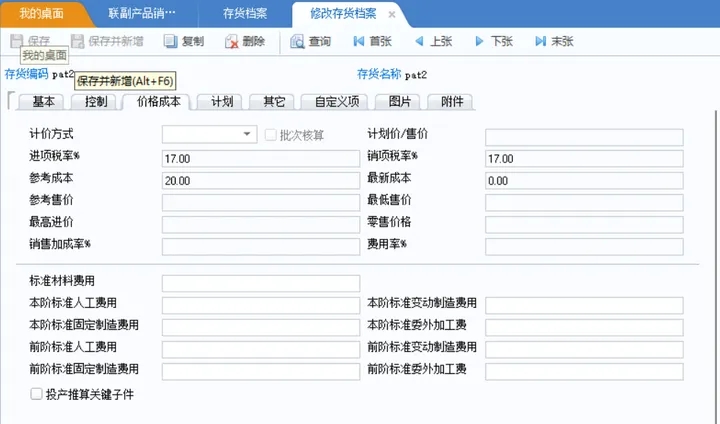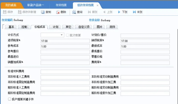 存货档案里,主副产品输入了参考成本