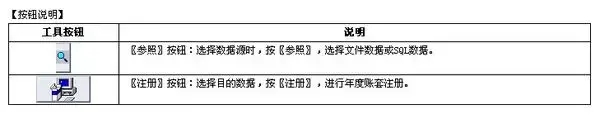 再有,我在总账工具的帮助说明里,看到的“按钮说明”,可是我在自己的界面没有找到“参照”与“注册”这两个按钮。是不是帮助没有更新,这个是低版本的说明?