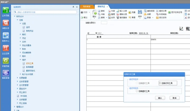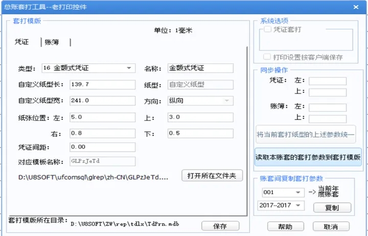 1) 使用老打印控件;在【总账】-【维护】-【打印工具】,选择老打印控件-【总账套打工具】,通过账套间复制套打参数,来复制已设置好打印的账套的打印参数;前提是目标账套与被复制账套在【总账】-【设置】-【选项】-【账簿】中设置一致,以及凭证打印-设置界面选择的纸型一致