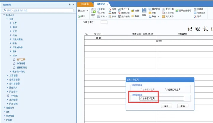 1.即【总账】-【设置】-【选项】-【账簿】页签未勾选使用新打印控件打印;在【总账】-【维护】-【打印工具】点开,选择老打印控件-【总账套打工具】