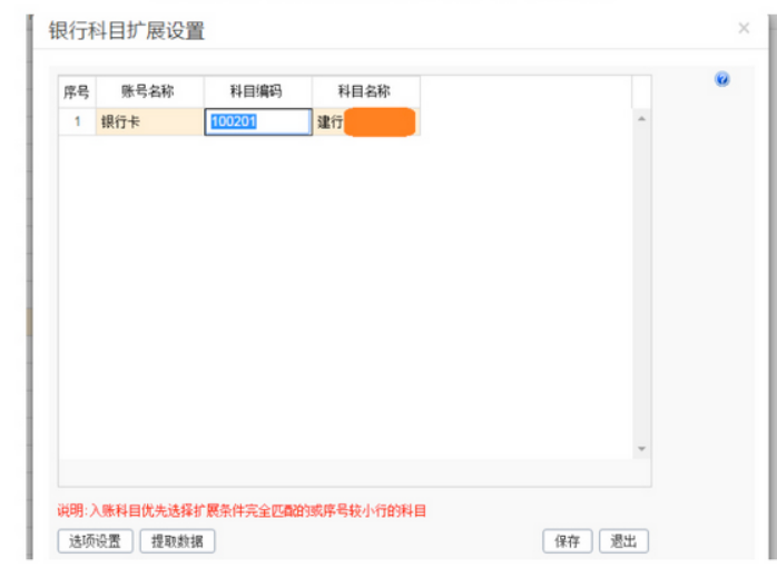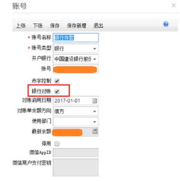 2、设置好账号信息,将账号设置为银行对账。