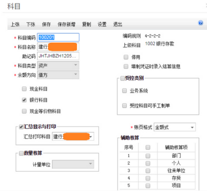 1、将银行存款设置为银行科目。
