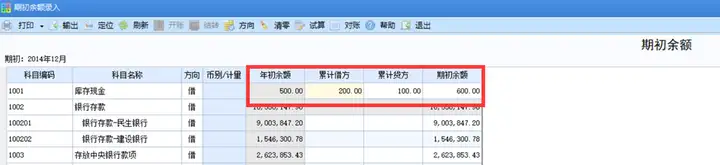 科目期初余额录入之无辅助核算