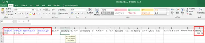 2.模板上录入科目编码,币种名称,辅助核算类型选择0,金额期初余额方向以及金额期末;如为外币核算,则填上原币期末;如果是年中启用总账,则把累计借方本币金额,累计贷方本币金额也维护上