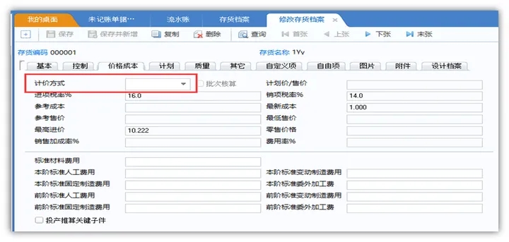 解决办法:在存货档案-价格成本页签,填上计价方式再去记账