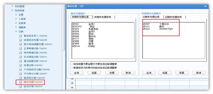 ③上述单据如果有一方仓库不计入成本,无法做特殊单据记账,只能做正常单据记账