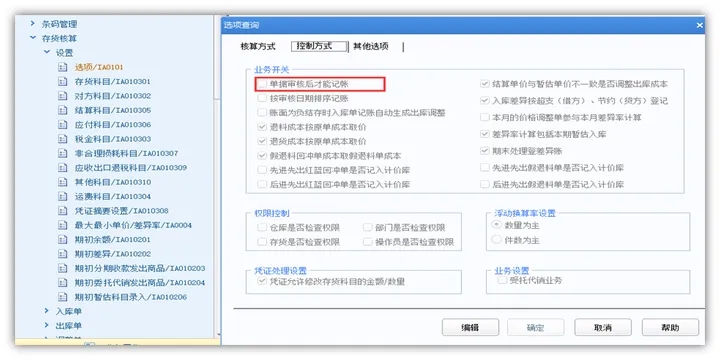 3)、单据审核后记账,单据未审核或者审核日期在后续月份(销售发票,采购发票为复核日期)