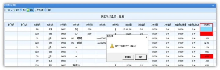 出库单:出库单记账无法按计价方式取到价格,且无法按【零成本出库选项】的设置取到价格,提示手工输入;移动平均,先进先出等计价方式在记账的时候提示,全月平均是在期末处理的时候提示。
