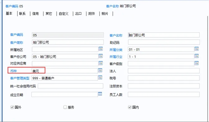 在基础档案-客商信息-客户档案\供应商档案中修改币种