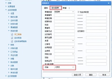 l 手工核销时按发票和收款单分别选择币种。