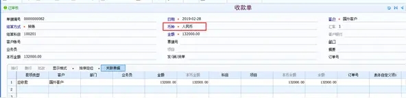 l 收款单录入币种“人民币“