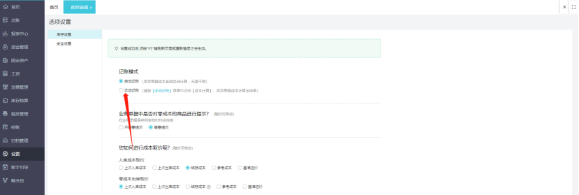 好会计和易代账软件库存核算零成本商品增加提醒功能