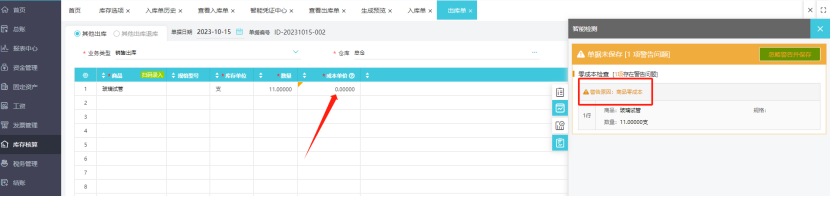 02、库存核算可设置录入单据对零成本商品进行提示