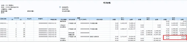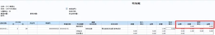 3. 查看存货明细账,根据对应计价方式分析单价为0原因;一般是根据计价方式算不出单价