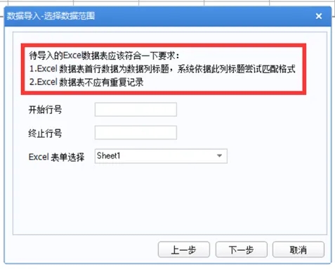2.导入模板存在重复记录;可以通过反复导入来确定具体重复的行;比如导入1000行,则可以先导入1-500行,如果导入有数据则重复行出在500-1000行,则继续选择1-750行导入,依此反复导入确定重复行;