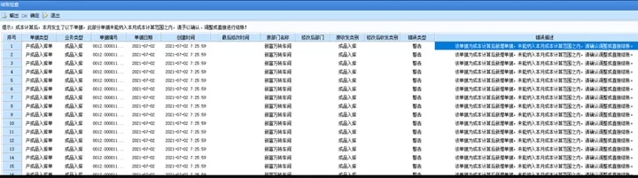 原因:卷积运算界面勾选非标循环领用先计算对应标准订单成本导致,最后一笔为非标返修入库,存在结算数量为0金额不为0,或账面结存负单价时,不会生成出库调整单