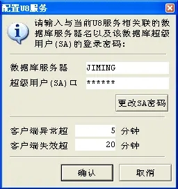 重新启动计算机进入Windows操作平台,系统提示输入U8数据库服务器和数据库管理员密码,