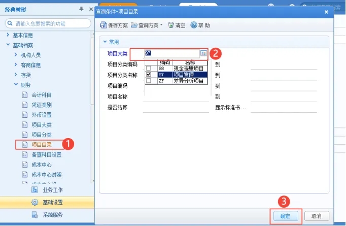 操作路径:基础设置---基础档案---财务---项目大类