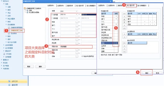 5,如上科目辅助核算 有 客户 部门 项目 三个,查账时如何同时显示这三项呢😎?