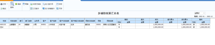答:可以查询多辅助核算汇总表
